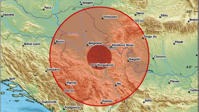 Epicentar potresa bio je 50 kilometara od Kragujevca, odnosno 35 kilometara od Jagodine