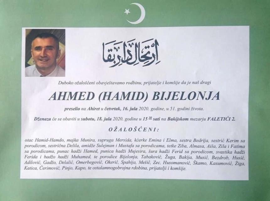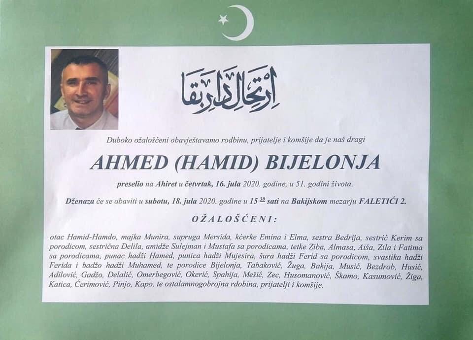 Eto, to nam je Bosna danas, pa kada budete glasali sljedeći put, imajte na umu da je samo pitanje vremena kada ćete vi ili neko blizak vama biti ja.”- napisao je 23. juna na svojoj FB stranici Ahmed Bijelonja.