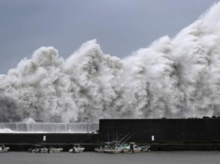 Televizijske snimke pokazuju valove koji udaraju obalu, preokrenute automobile, stotine zapaljenih vozila i veliki točak u zabavnom parku koji se okreće po najsnažnijem vjetru.