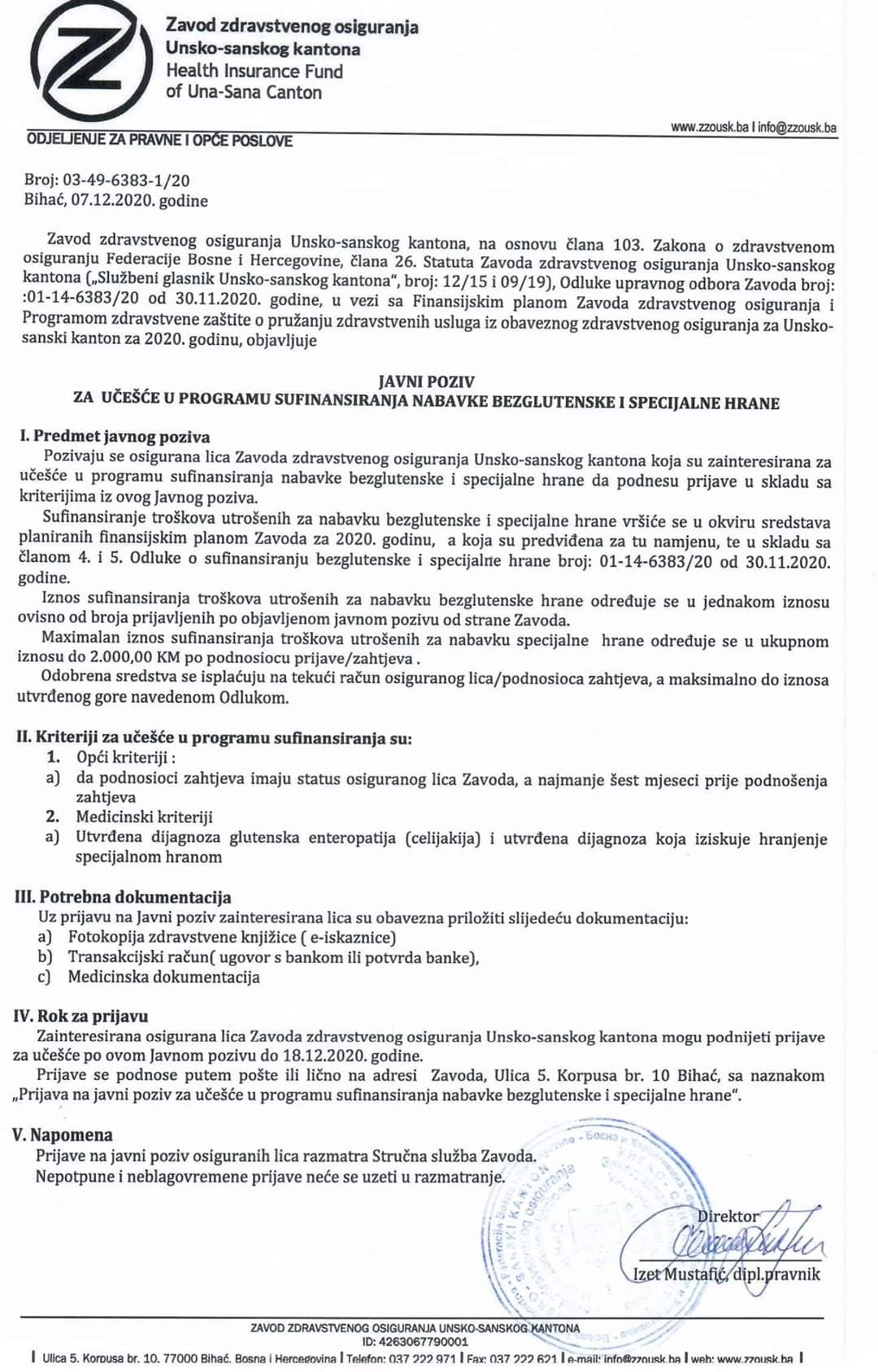 Javni poziv Zavoda zdravstvenog osiguranja USK-a (FOTO)