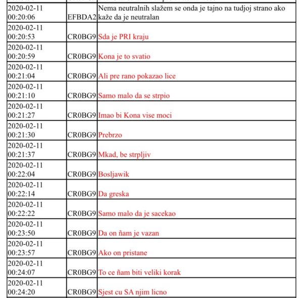 “SDA je pri kraju. Kona je to shvatio. Ali prerano je pokazao lice. Samo mało da se strpio. Imao bi Kona više moći. Prebrzo. Nestrpljiv. Bošnjak. Greška je to. Samo da je malo sačekao. Da, on nam je važan. Ako on pristane to će nam biti veliki korak. Sjest ću sa njim lično”, napisao je Edin Gačanin Tito.