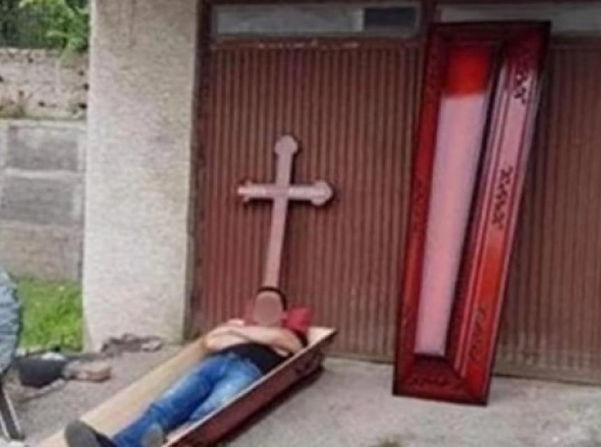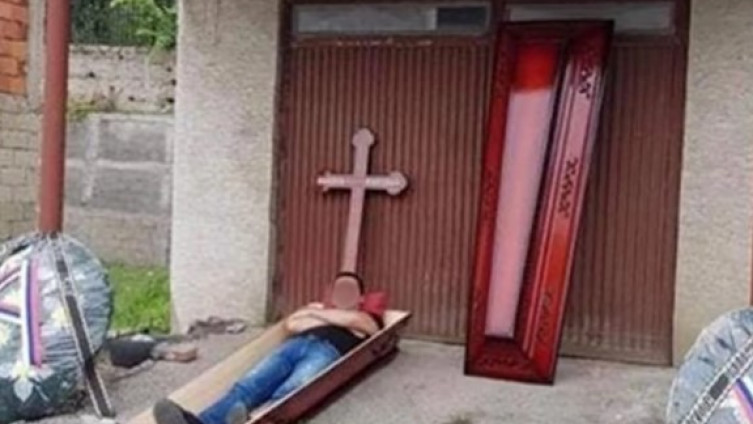Patrola je otišla do njegove kuće gdje su se policajci zaprepastili. Zatekli su ga kako leži u mrtvačkom sanduku, s vijencima za sahranu.
