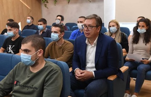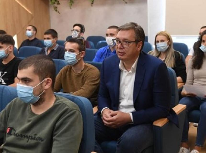 "Sretan sam što poslije mnogo godina krećem u ostvarenje dječačkih snova", napisao je Vučić uz fotografije na kojima se vidi kako sjedi među kolegama studentima, a uočljivo je i kako jedini ne nosi masku. Doduše, kasnije je ipak stavio masku.