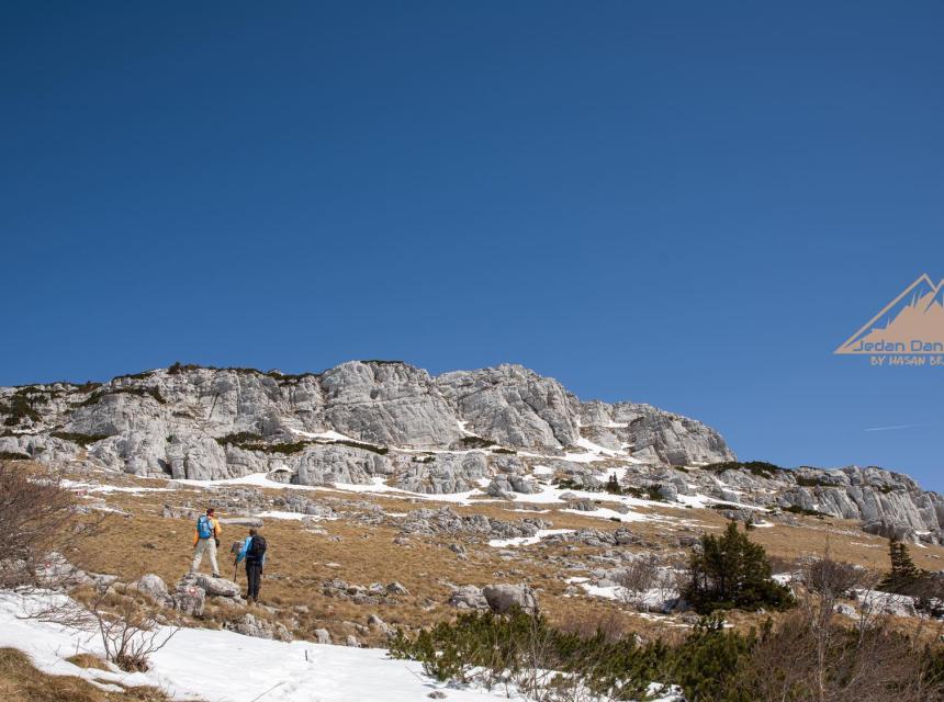 Nakon izlaska iz šume dolazi se na čistinu, tzv. livadu prije samog stjenovitog vrha planine. Na livadi se nalazi i smjerokaz koji nas usmjerava u dva pravca: stazom kroz kleku - lijevo, i stazom sa sajlom - desno. Većina planinara se odlučuje na atraktivniju stazu sa sajlom, pa smo tako i mi ovim putem došli do samog vrha.