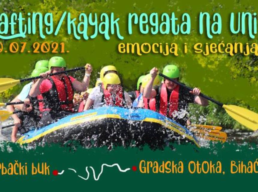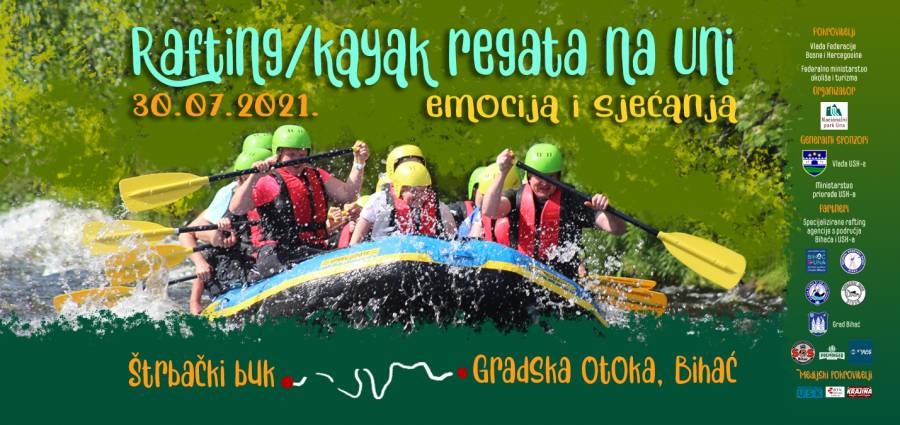 Rafting / kajak regata na Uni, emocija i sjećanja, održat će se 30. jula 2021. godine na relaciji Štrbački buk – Gradska otoka Bihać čiji je organizator Nacionalni park Una u suradnji sa partnerima i sponzorima. Prije početka same plovidbe održat će se takmičenje skipera u skokovima sa spektakularnog vodopada Štrbački buk. Pored plovidbe čamcima u sklopu ove manifestacije, održat će se tradicionalni skokovi sa Gradskog mosta u Bihaću u organizaciji Gradskog sportskog saveza, te Blobbing takmičenje na Betonu u Bihaću u organizaciji Udruženja ABC.ba. Pri dolasku vodene karavane u Bihać, odnosno na Gradsku otoku, bit će upriličen muzički program, koncert BH zvijezde, a ulaz na koncert je besplatan.