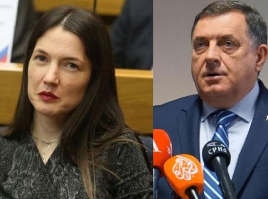 Ona je navela da Dodik u svojim izdajničkim pohodima u koje uvlači i narod i RS, ne preza da obmane, izgovori notornu neistinu, što znači da je spreman na sve, pa i na to da pred predsjednikom Srbije govori svakojake gluposti.