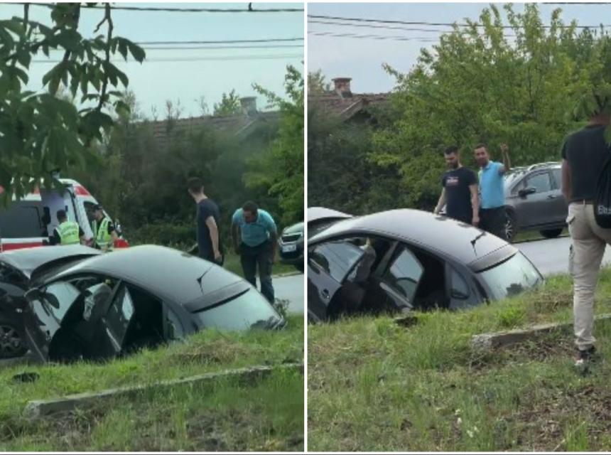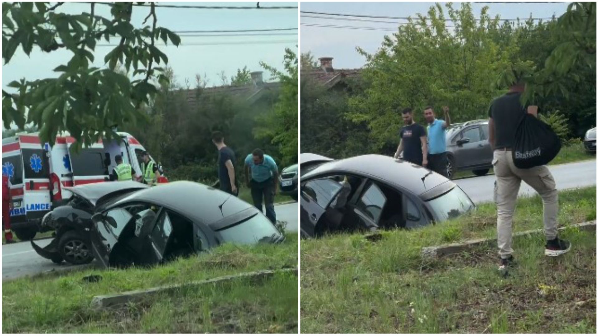 Dva putnička vozila su se sudarila u naselju Divostin, u blizini Kragujevca, a kako se vidi na snimku, na jednom od automobila je pričinjena totalna materijalna šteta.