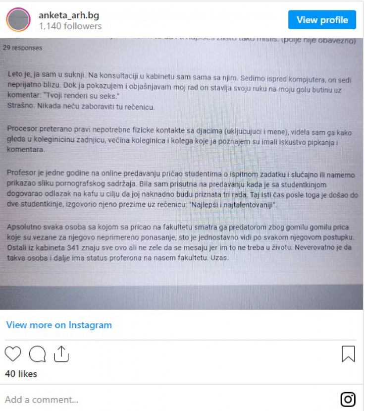 Na Instagram nalogu koji je napravljen samo za ovu situaciju, pojavile su se ispovijesti anonimnih studenata o situacijama kroz koje su oni prolazili i o seksualnom nasilju koje su doživjeli od strane profesora i asistenata na fakultetu.