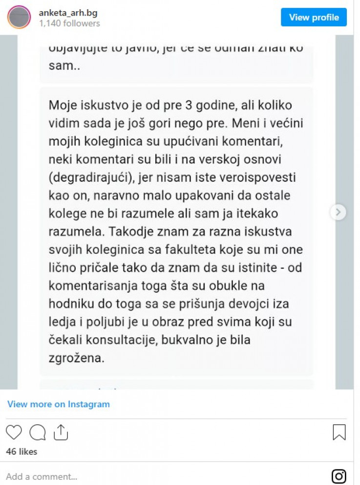Prenosimo vam samo neke od ispovjesti, koje su objavljene na Instagram nalogu anketa_arh.bg.
