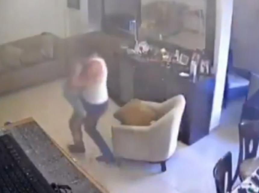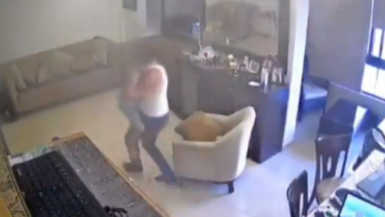 Na snimku za vrijeme eksplozije otac uzima svoje dijete i krije se s njim ispod kuhinjskog stola.