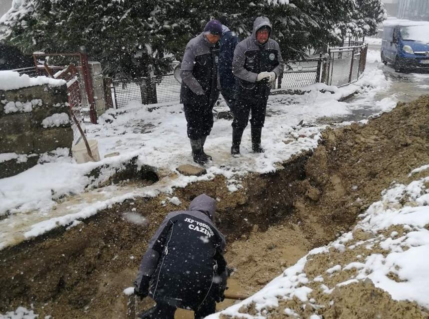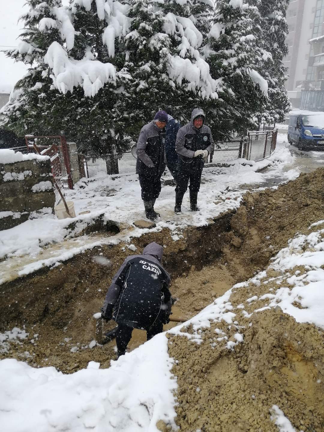 Zaposlenici JKP "VODOVOD" Cazin danas vrijedno rade na saniranju kvara u ulici dr. Irfana Ljubijankića u Cazinu.