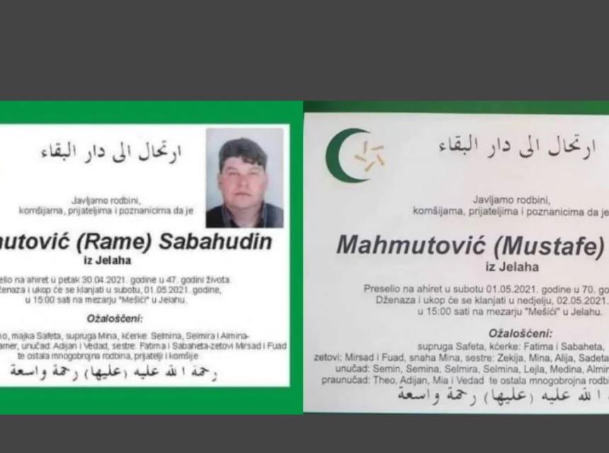 Dva dana nakon, 1. maja, u Jelahu je preminuo i njegov otac Ramo Mahmutović u 70. godini života. Dženaza će se klanjati danas u 15 sati na mezarju “Mešići” u Jelahu.