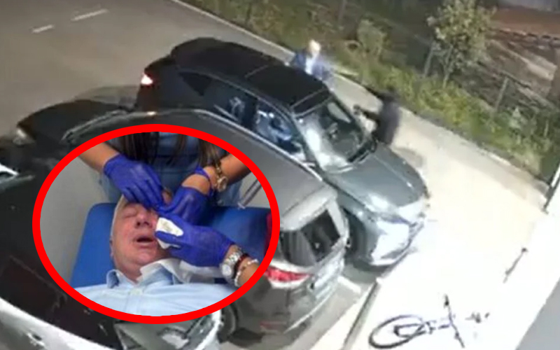 Dvojica počinilaca su ga poprskali biber-sprejom, nakon čega su pobjegli, a sve su zabilježile kamere s videonadzora.