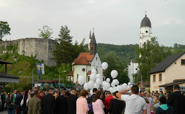 Gradski trg u Bosanskoj Krupi sinoć se na kratko pretvorio u “Trg mladosti” gdje su Krupljani, i stari i mladi, došli da dočekaju i isprate maturante, upute im čestitke i slikaju se s njima, a osmijeh i sreća bili su jedini prisutni među njima.