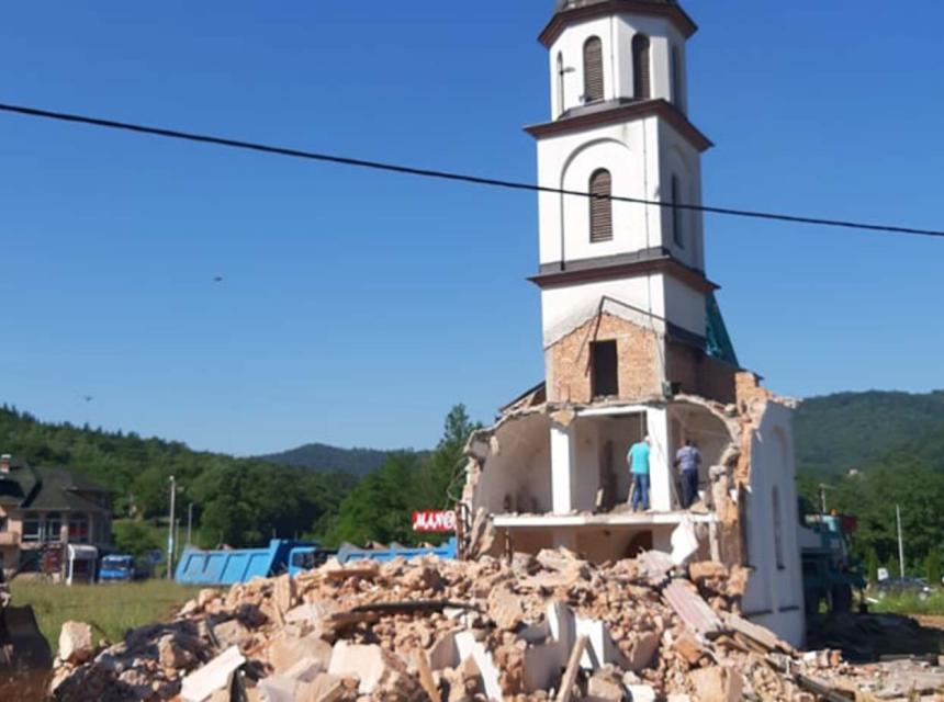 Ne pominje se ni da je crkvu srušio onaj koji je i izgradio uz blagoslov onih koji su sve to i ranije blagoslovili.