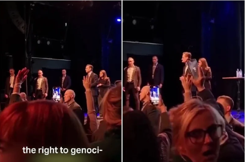 Jedna osoba iz publike je prozvala premijera ispitujući: "Je li im sada dopušteno počiniti genocid ? Ima li Izrael to pravo?"
