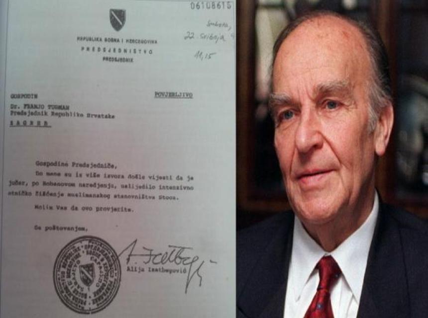 - Gospodine predsjedniče, do mene su iz više izvora došle vijesti da je jučer, po Bobanovom naređenju, uslijedilo intenzivno etničko čišćenje muslimanskog stanovništva Stoca. Molim Vas da ovo provjerite. Sa poštovanjem, Alija Izetbegović – stajalo je u dopisu.
