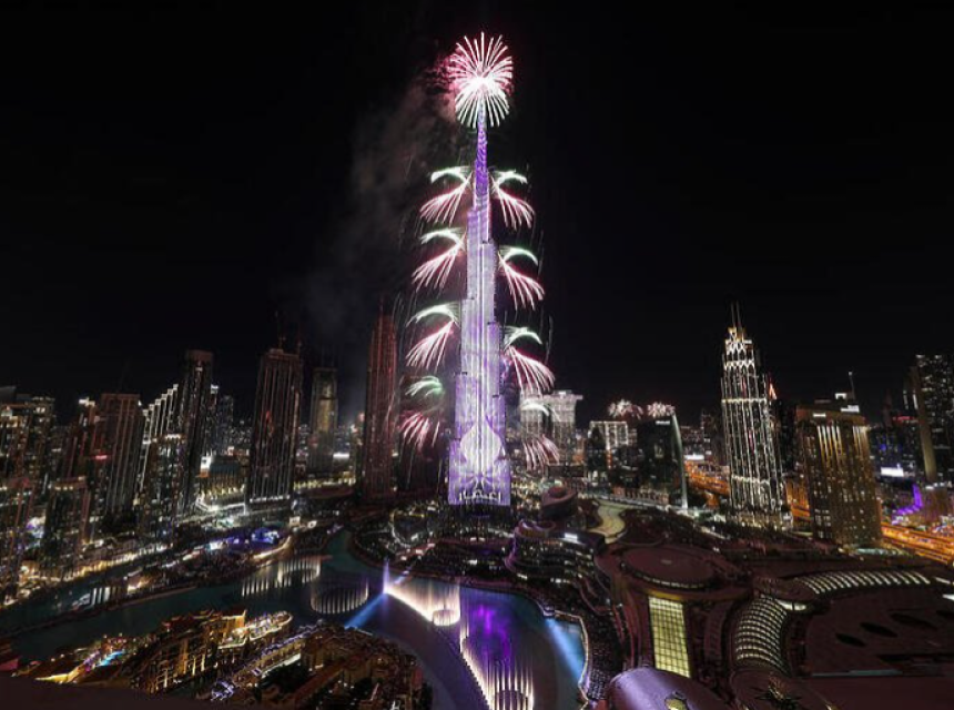 Priređen je vatromet iznad Burj Khalife, koja se nalazi u Ujedinjenim Arapskim Emiratima. Ona je trenutačno najviša građevina na svijetu. Dubai je otvoren za turiste, a oni su dužni pokazati negativan nalaz PCR testa.