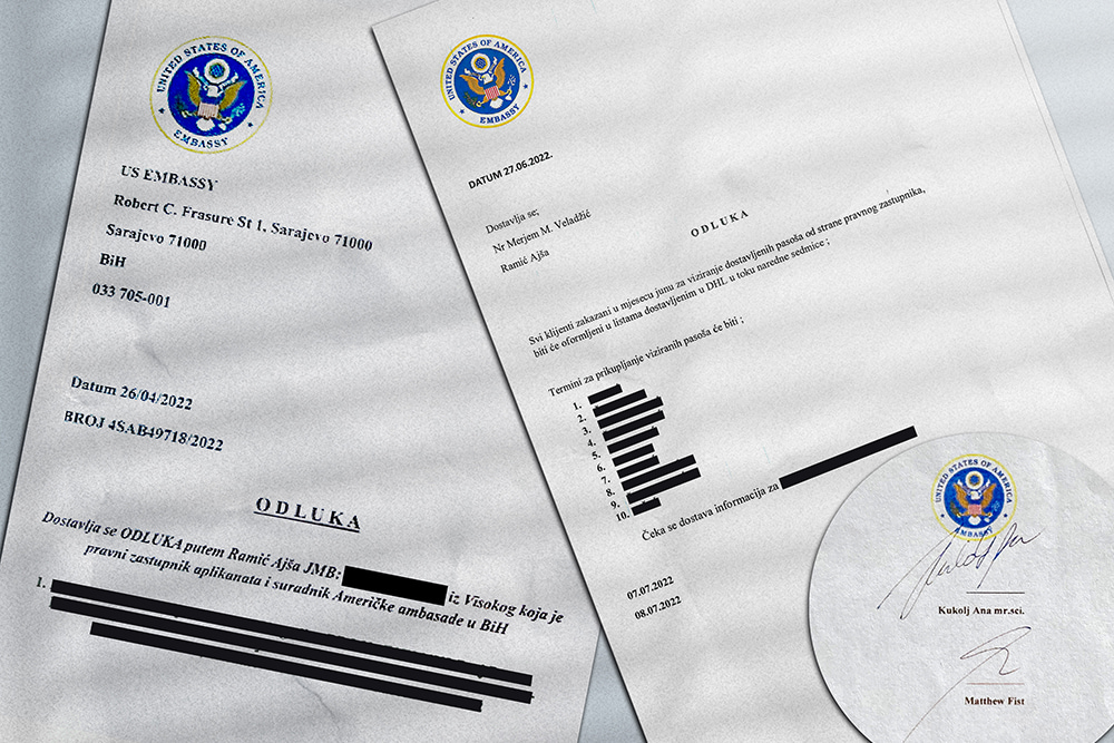 Klijenti su od Ajše Ramić dobijali falsifikovane dokumente Ambasade SAD-a u BiH na kojima je pisalo da su stekli pravo na vizu (Foto: CIN)