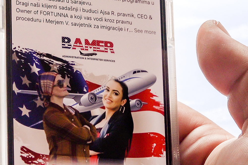 „Postoje ilegalni načini, ali, molim vas, nemojte! Dovest ćete se u situaciju da vas deportuju“, poručila je preko društvenih mreža klijentima pravnica Ajša Ramić, reklamirajući svoj novi biznis. Svježe povezana sa imigracijskom savjetnicom Merjem Mirsadom Veladžić, Bosancima i Hercegovcima željnim boljeg života nudila je pomoć i obećavala lagan put do američke useljeničke vize.