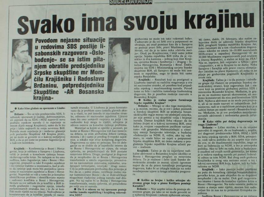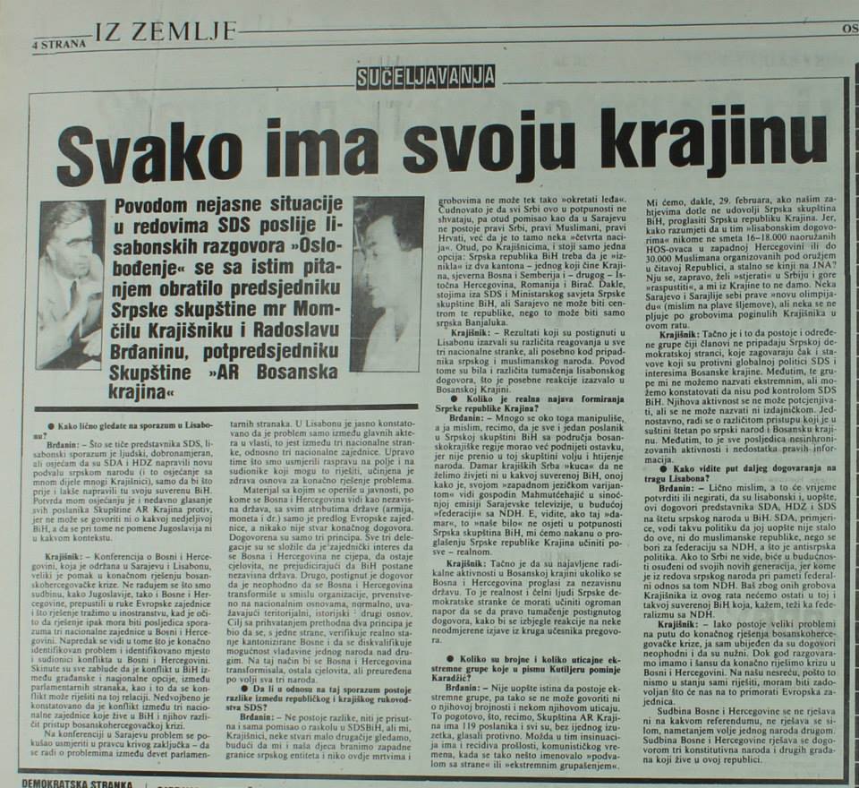Historijski arhiv grada Sarajeva podijelio je na Facebooku nekoliko fotografija novinskih članaka objavljenih krajem februara i početkom marta 1992. godine.