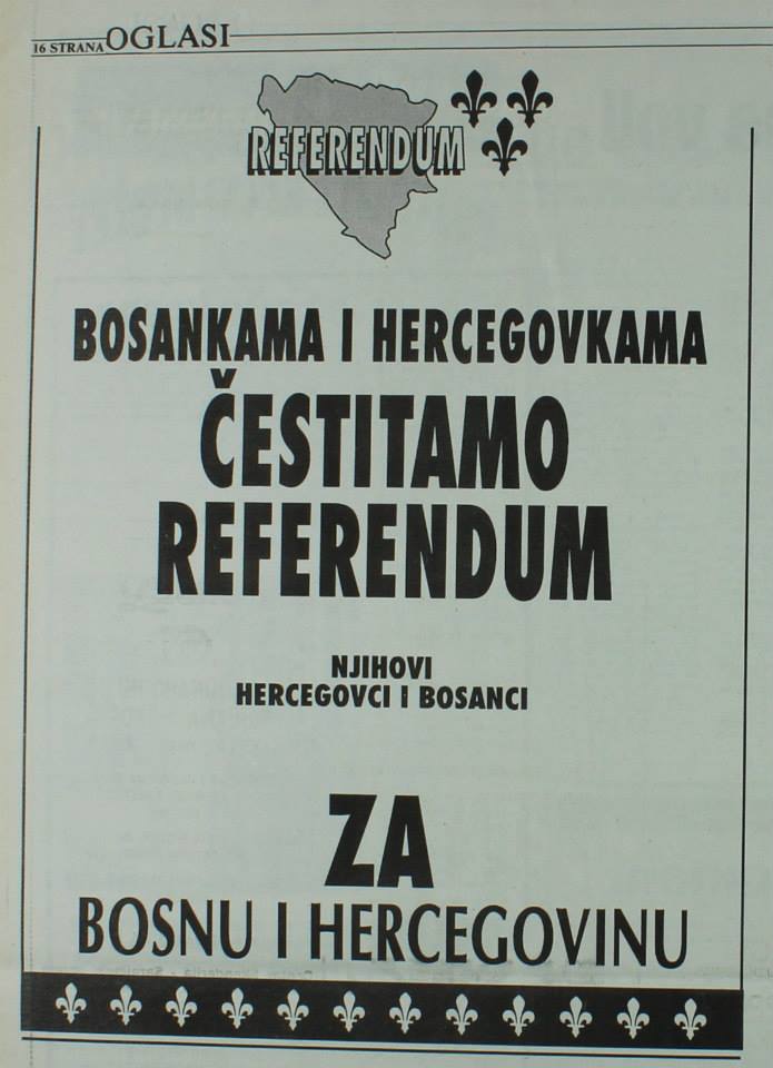 Na referendumu građana Bosne i Hercegovine 29. februara i 1. marta 1992. godine većina se opredijelila za nezavisnu i suverenu građansku republiku Bosnu i Hercegovinu.