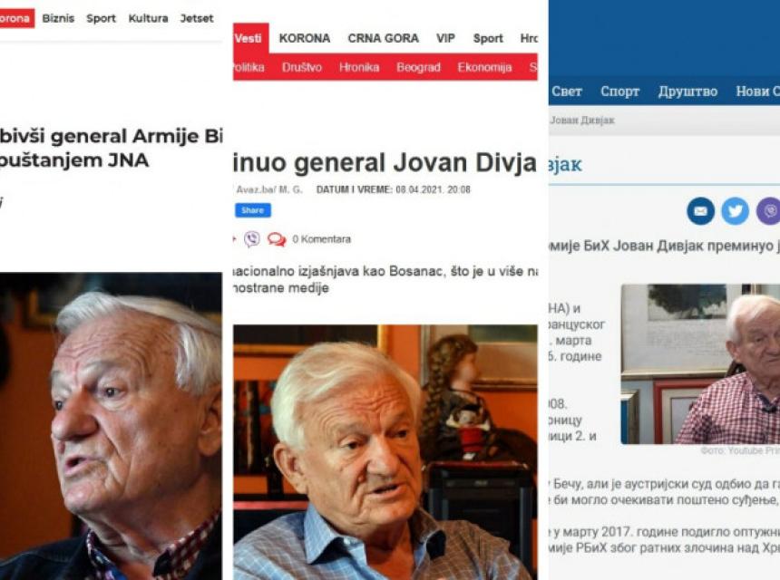 "Kurir" je objavio kraću biografiju o generalu Divjaku uz skandalozan naslov, falsificirajući istinu o događajima iz maja 1992. godine - "Umro Alijin srpski general: Jovan Divjak, akter zločina protiv JNA u Dobrovoljačkoj".