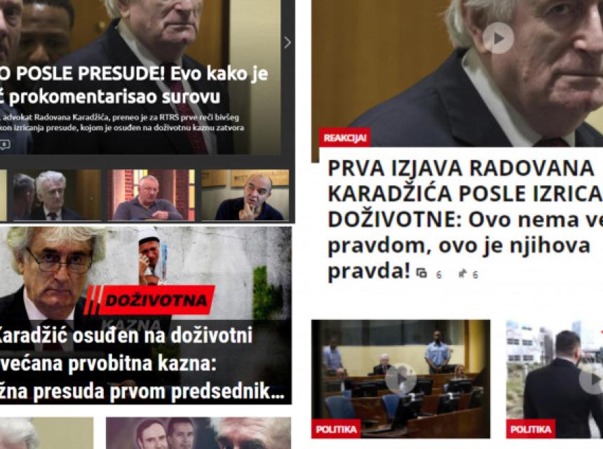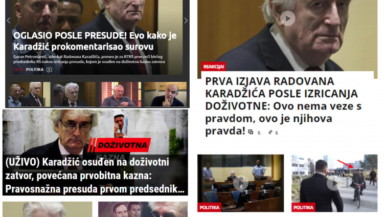Druga vijest po važnosti na Kuriru je potpuno izvrnuta realnost. Od vijesti da se pred Sudom u Hagu, gdje su žrtve, uglavnom majke Srebrenice, čekale presudu, pojavio čovjek sa srpskom zastavom da provocira, Kurir je napravio vijest da je Srbin napadnut i otjeran.