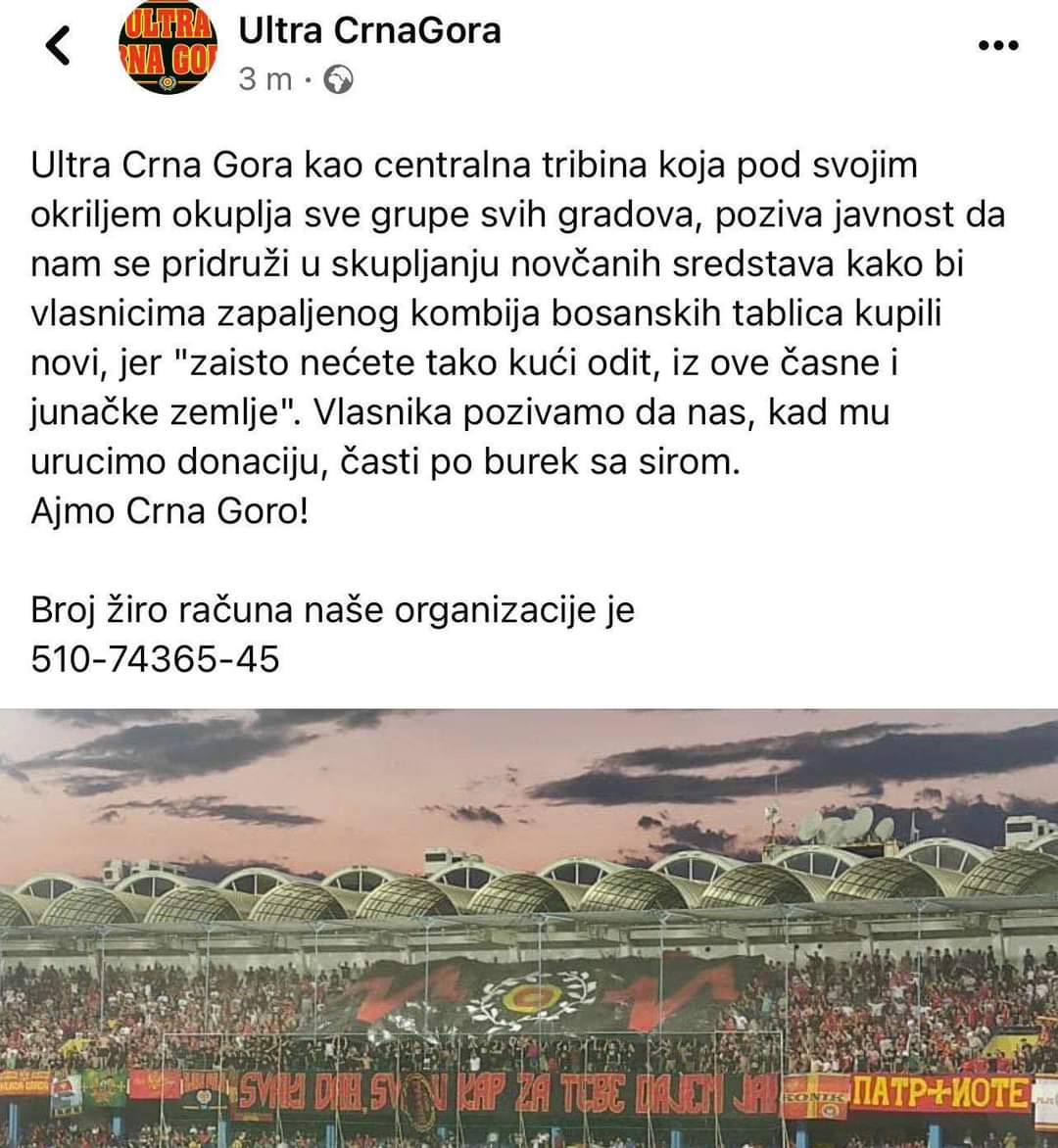 Sve bi to još zvučalo i normalno za balkanske navijače da se nije desila gesta crnogorskih navijača organizovana od strane Ultra Crne Gore koja okuplja navijače iz svih gradova te zemlje.