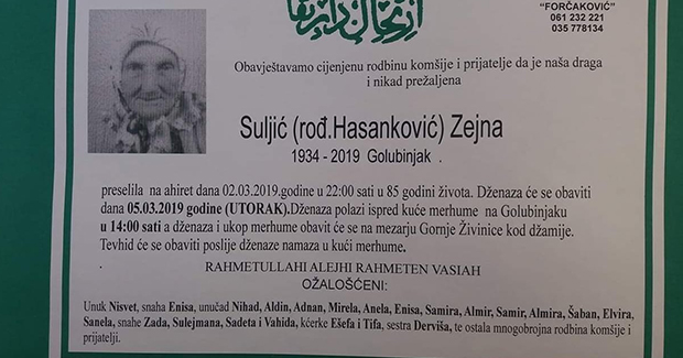 Svaka hajr voda u Podrinju ima svoju priču, a sve su nastale iskrenim nijetom kao trajna sadaka. Godinama se ovdje napajaju znani i neznani, insani i hajvani, ali nigdje mi voda nije tako pitka kao sa hajr česme koju je podigla majka Bejda. Nazvali smo je Šehidska česma, jer je ovu hajr vodu majka posvetila svojoj djeci čije su živote prekinuli neljudi sa kokardama. Iako u bolu mi nikada nismo pokazivali strast za osvetom niti mržnju. O tom nijetu je sanjala godinama i izdvajala od skromne šehidske invalidnine kako bi vodu dovela sa izvorišta do puta. Čak je i hadž odgađala govoreću kako joj je trenutno ovaj nijet preči. I taman kad je htjela prići vodi putem naiđe kamion bivše JNA. Htjela je pričekati da kamion prođe, no vozač se zaustavi izađe iz kamiona noseći plastični kanister te upita Redžu: “Komšija jeli ova voda za piće? Tamo u šumi nema vode nikako pa bih nasuo ovaj bidon”. Redžo je zbunjeno pogledao u Bejdu, pa kad je vidio da mu je klimnula glavom, odgovori: “Jest komšija za piće i nema je ovakve na daleko. Ovo ti je vrelo Karačin do, sličan je našem Jastrebu u Redžićima i Grabu u Glodima. Bujrum naspi koliko ti treba.” Vozač kamiona priđe česmi odvrnu je napi se iz ruku, nasu kanister, te nakratko zastade ispred ploče sa natpisom. U ime Allaha milostivog samilosnog Šehidska česma Podiže Bejda svojoj djeci šehidima Muminović Avdo, Enver, Enesa Okrenu se prema majci Bejdi i reče: Neno svaka ti čast. Za ovakvo dobro djelo Bog nagrađuje i po vašoj i po našoj vjeri.”Dao ti Bog zdravlja.” Nena se blago osmjehnu i reče:”Eto ja se taman spremala da se prva napijem, a bi tvoja nafaka. Kad god prođeš naspi, napij se, nemoj žedan u šumu.” Bio je to drvosječa koji svake jeseni naiđe sa kamionom bivše JNA. U šumi proboravi nekoliko dana kako bi nasjekao i natovario drva. Ne znamo mu ime, ali znamo da je Srbin iz Liješnja.. Nije imao šta kazati Redžo Redžić iz Redžića kojemu su četnici ubili dvoje djece. Zna i Redžo i majka Bejda koja u agresiji izgubi tri zlatne jabuke da je hajr voda za svakog insana, molio se on ovom ili onom bogu ili se ne molio ni jednom. Nemaju oni srce za mržnju, samo ono ispunjeno bolom, ali i dubokom vjerom u pravdu Gospodara svjetova. I zbog tog događaja ova nam je česma posebno draga. Majke Bejde nema već dvije godine. Leži pod zemljom uz svoju djecu, uz moju braću i sestru. Sa šehidske česme se svakodnevno napajaju znani i neznani. Izvor ne presušuje. Žedan niko nije.