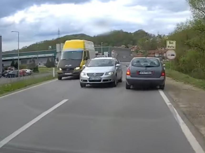 Na YouTubeu je objavljen video rizične vožnje neodgovornog pojedinca kod Tuzle. Kako je snimljeno, vozač passata je krenuo u opasno preticanje kombija dok su mu ususret dolazila dva vozila.