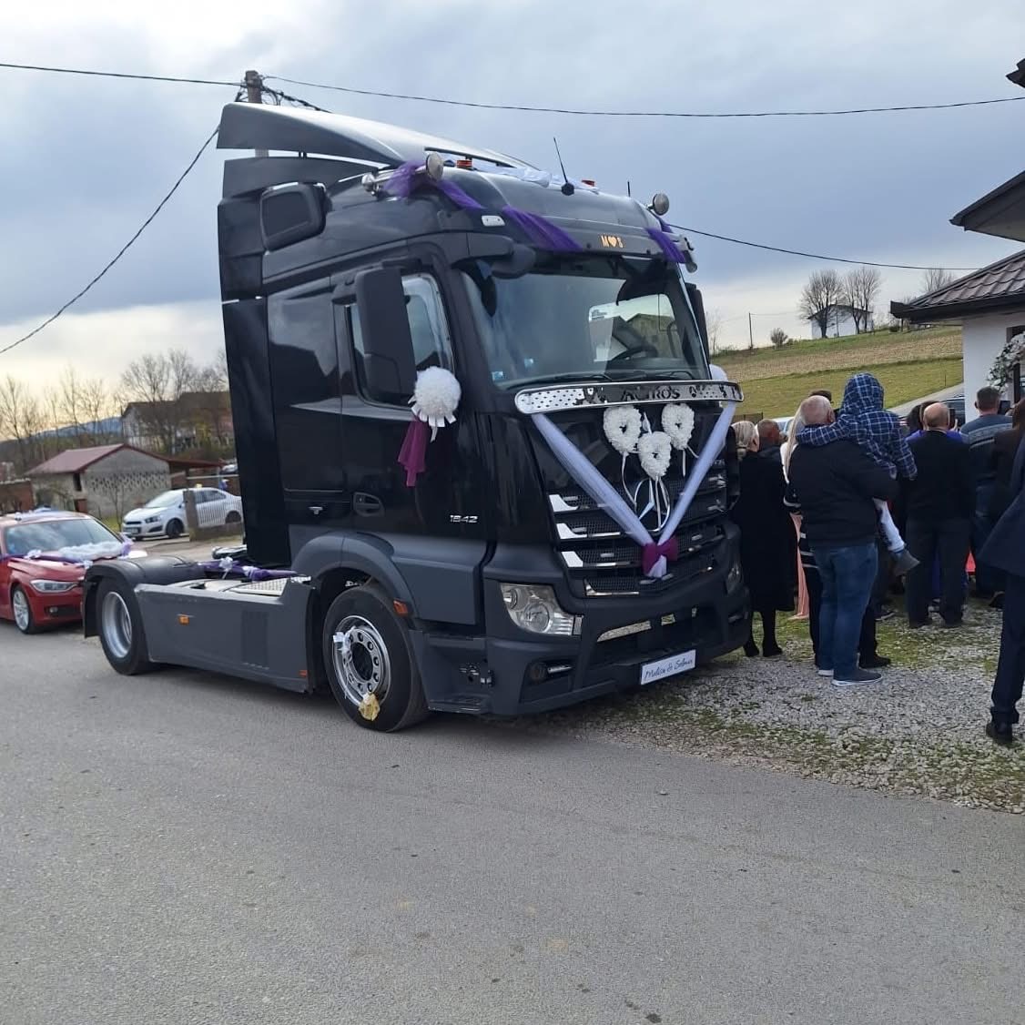 Na snimku se vidi kako okupljeni mještani s osmijehom dočekuju mladoženju Selmina, koji je – umjesto u limuzini – po svoju Melisu došao u šleperu. Kamion, ukrašen mašnama, cvijećem i ljubičasto-bijelim detaljima, postao je simbol današnjeg veselja i nešto što će se u Krajini još dugo prepričavati.