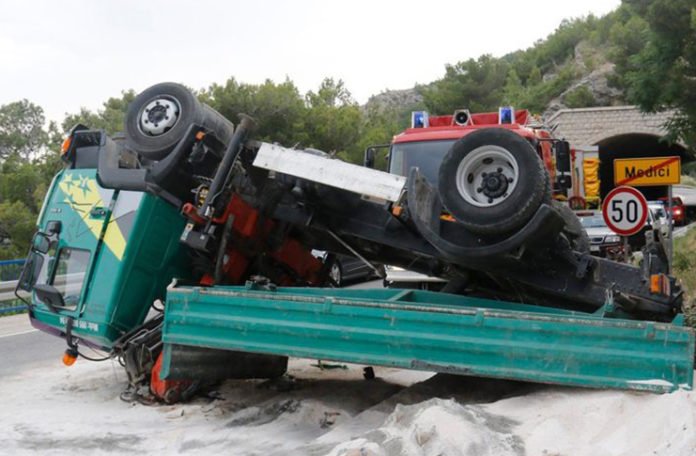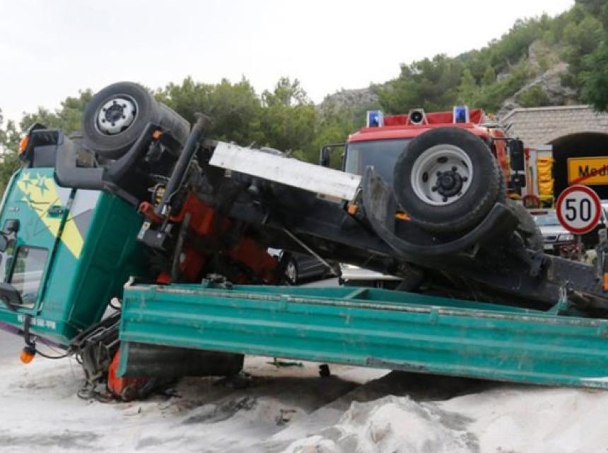 U saobraćajnoj nesreći u mjestu Medići nedaleko od Omiša kamion marke MAN iz zasad nepoznatog razloga pao je s visine od dvadesetak metara na Jadransku magistralu.