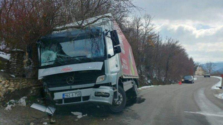 Nakon slijetanja s ceste u jarak i udara u potporni zid uz kuću, na kamionu je pričinjena veća materijalna šteta, ali nije bilo povrijeđenih.