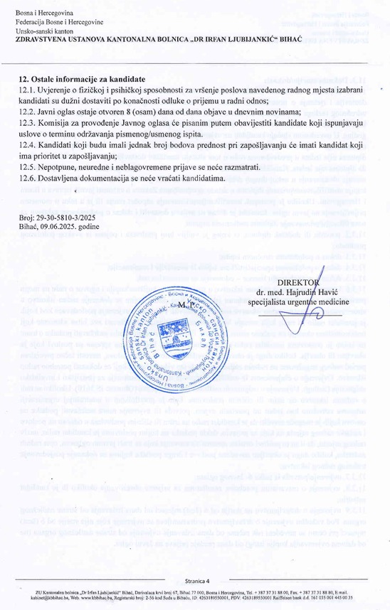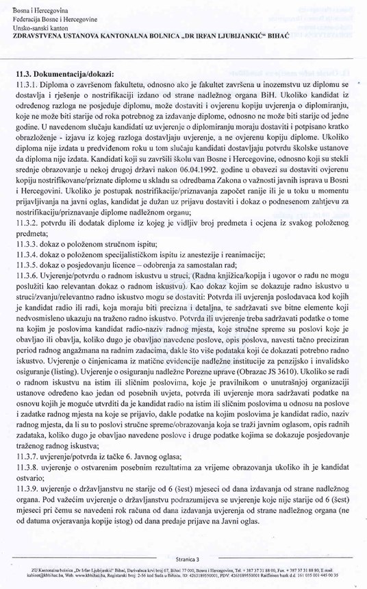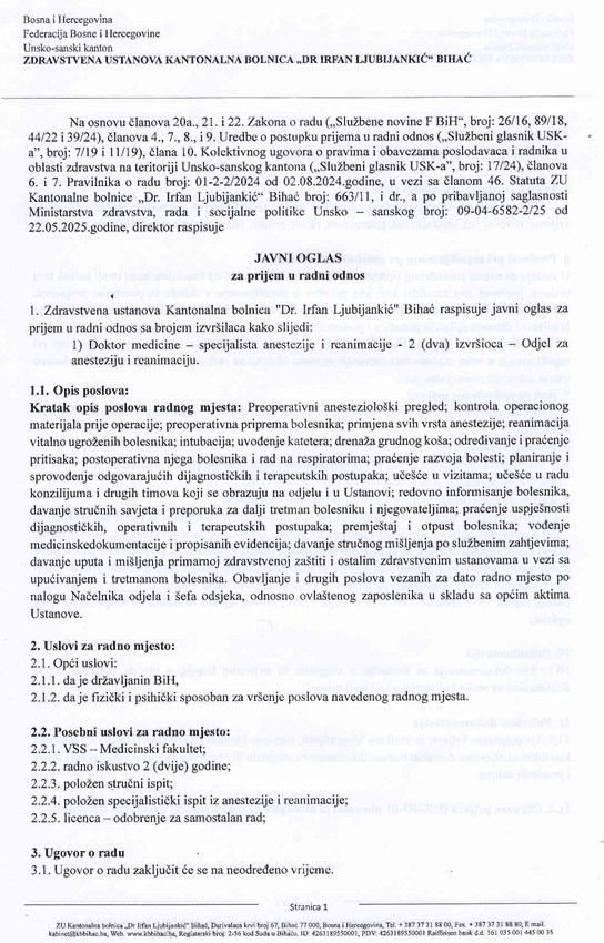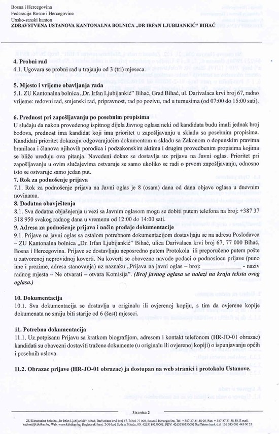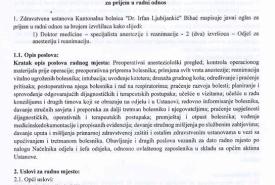 Oglas za posao u kantonalnoj bolnicu u Bihaću