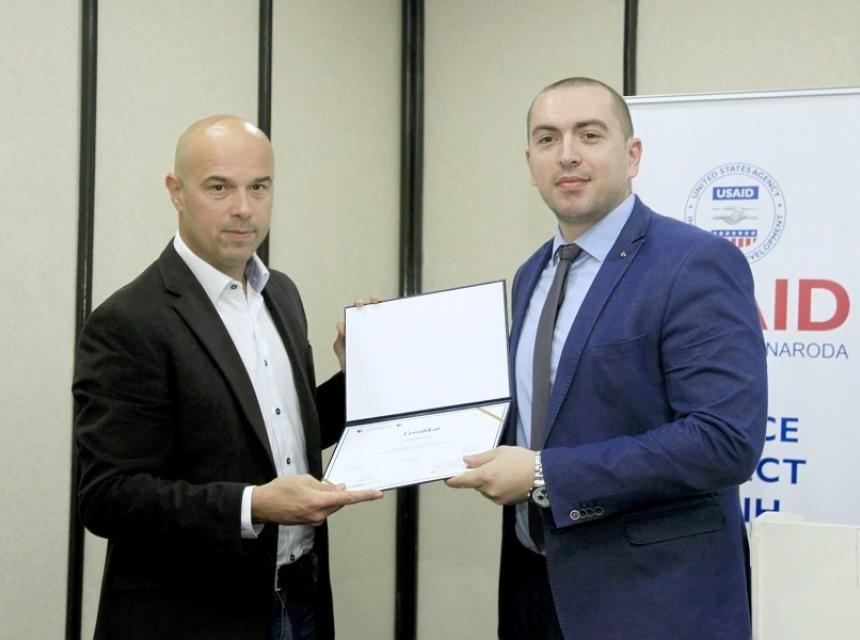 Dodjelom certifikata tužiteljima, polaznicima specijalističke obuke iz oblasti korupcije, danas je na prigodnoj svečanosti u Sarajevu ozvaničena realizacija dvogodišnjeg programa edukacije u sklopu projekta Jačanja tužiteljskih kapaciteta u sistemu krivičnog pravosuđa, koji su podržali vlade Švicarske Konfederacije i Kraljevine Norveške, kao i Američka agencija za međunarodni razvoj (USAID).