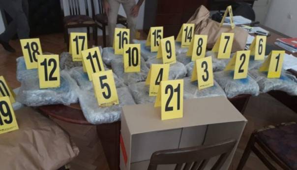 U akciji je pronađeno i oduzeto oko 50 kilograma zeljaste materije koja svojim izgledom asocira na opojnu drogu, a čiji sastav će se utvrditi vještačenjem, saopćeno je iz Kantonalnog tužilaštva USK Bihać.