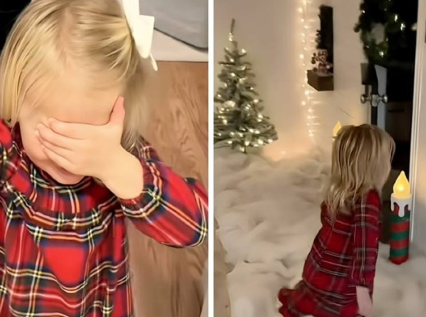 Na kraju snimke, djevojčica ulazi u sobu u kojoj se nalazi kućica prepuna lampica i ukrasa, a ispred nje je božićno drvce i hrpa punjenja iz jastuka koja nalikuje snijegu. Djevojčica je bila oduševljena te nije mogla skinuti osmijeh s lica, a prizor je osvojio srca mnogih.