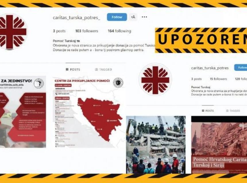 - U Karitas BiH stigle su informacije o zloupotrebi materijala Karitasa BiH prilikom prikupljanja pomoći za stradale od potresa u Turskoj i Siriji. Informiramo sve vas dobre ljude kako biste bili oprezni i koristili prave informacije koje se nalaze na službenoj mrežnoj stranici Karitasa BiH: www.caritas.ba. Usprkos spomenutoj zloupotrebi nemojte posustati u činjenju dobra, pružanja podrške stradalima od potresa u Turskoj i Siriji - naglasili su oni.