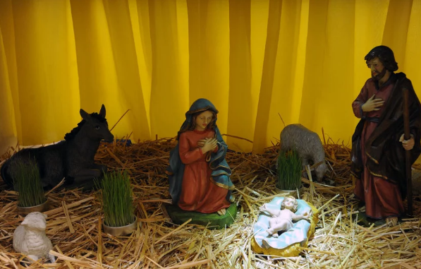 Prema Bibliji, Isusa je rodila je Djevica Marija koja je začela bezgrešno, a u porodu joj je pomogao njen zaručnik Josip. Isus se rodio u štali u gradu Betlehemu, okružen domaćim životinjama, zbog čega vjernici na Božić ispod bora imaju jaslice i figure ovaca.