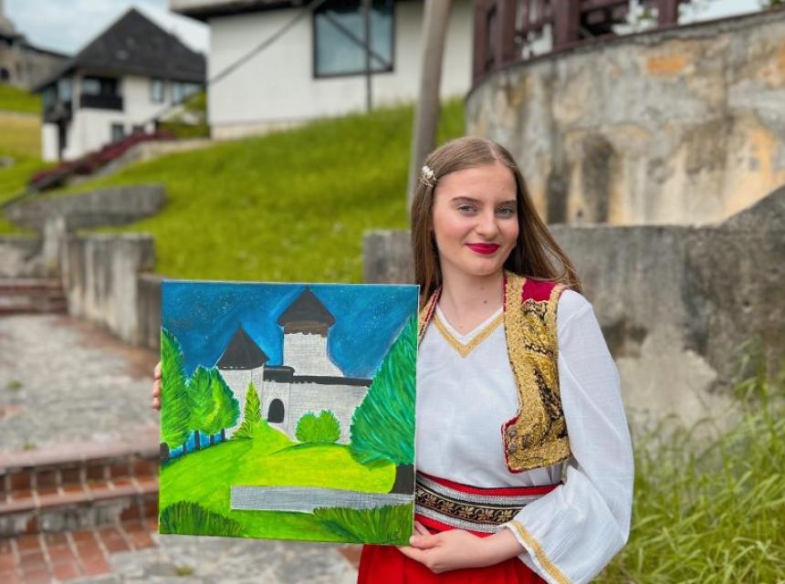 O našoj mladoj i talentiranoj sugrađanki Kemili Šakanović već smo imali priliku govoriti. Podsjećanja radi, ova srednjoškolka od malih nogu druži se s kistom i bojama, a velika ljubav joj je arapska kaligrafija.