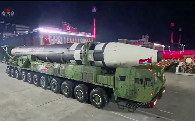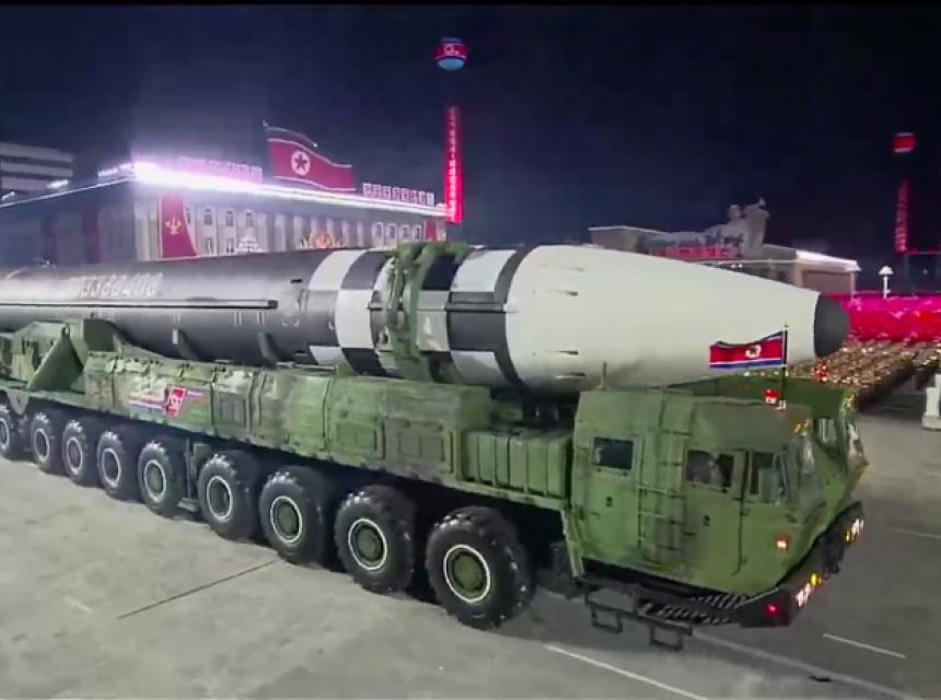 Snimci s državne televizije Sjeverne Koreje prikazuju kako transportno vozilo s 22 točka prevozi veliki projektil, veći od ičeg što je vojska Sjeverne Koreje dosad pokazala. To je prvi put od 2018. da je Sjeverna Koreja pokazala interkontinentalni balistički projektil na vojnoj paradi.