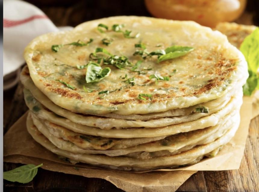 Sastojci: 250 g glatkog brašna, 180 ml mlake vode, prstohvat soli, 4-5 komada mladog luka, malo maslinovog ulja, malo soli.