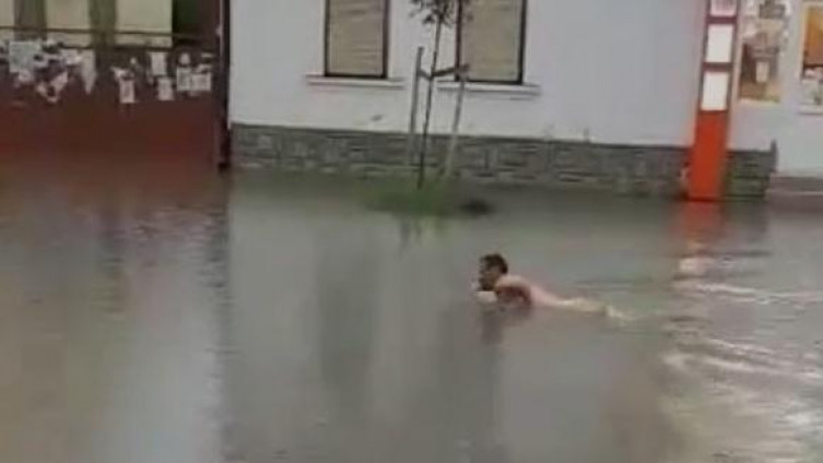 Dok su drugi stajali na ulazima u radnje i gledali ga, on je zaplivao ulicom. Legao je na dušek i riješio da plivajući stigne tamo gdje je krenuo. Mokar bi bio svakako, pa što se ne bi malo i zabavio, prenoe Novosti.rs.