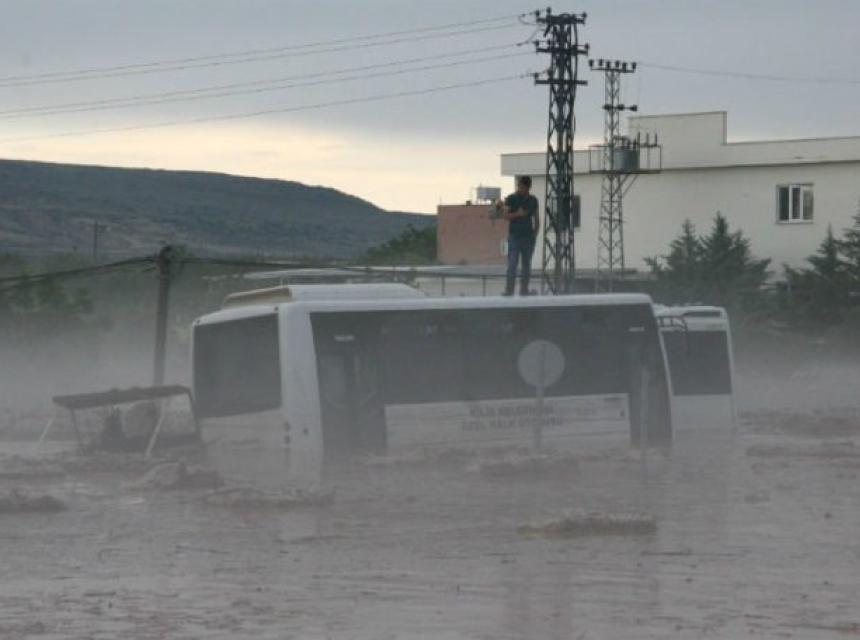 Nakon kratkih, ali vrlo obilnih padavina u južnom turskom gradu Kilisu, voda je zahvatila brojne stambene objekte i napravila katastrofu u gradskom saobraćaju, javlja Anadolu Agency (AA).