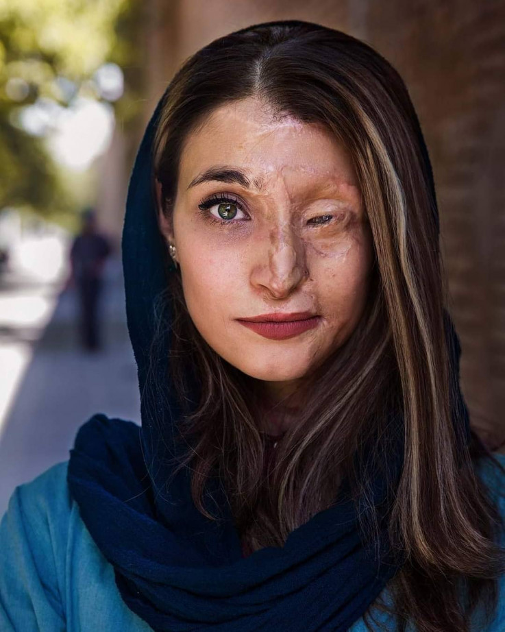 - Ona je Marzi, jedna od najačih žena koju sam srela. Fotografiju sam snimila prije izvesnog vremena u Iranu i danas nakon što sam dobila saglasnost od Marzi odlučih da je objavim. Marzi se vozila u Isfahanu u Iranu prije šest godina, kada su dva muškarca na motorima, približila se njenom automobilu. Jedan od njih joj je bacio kiselinu u lice i onda su pobjegli. Policija ih nikad nije uhapsila i pored toga što su ulice pokrivene video-kamerama. U Isfahanu je iste godine bilo nekoliko sličnih slučajeva gdje počinioci nikada nisu bili uhvaćeni! Sva ta grozna djela bila su usmjerena prema ženama koje nisu nosile konzervativnu odjeću.