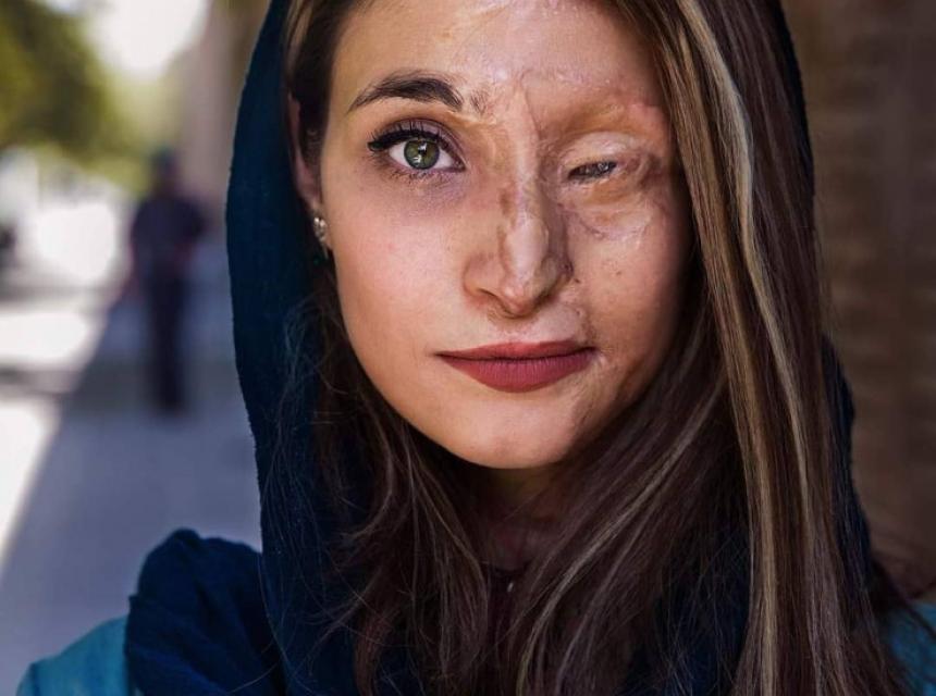 Međutim, jedna se na neki način izdvaja. To je fotografija Marzi (Marzieh), prelijepa žena koja je bila žrtva napada kiselinom. Što nije neubičajno u Iranu, zemlji iz koje dolazi.