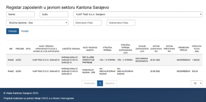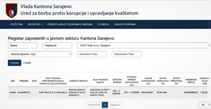 U Radu je zaposlen i Namik Hajdarević, suprug Samre Ćosović-Hajdarević, zastupnice SDA u Skupštini KS, kao saradnik za kontrolu i analizu naplate na parking prostoru, za šta ostvaruje mjesečna primanja viša od 1.300 KM.
