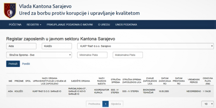 Mjesečna plata Koldžine supruge, kao „koordinatora kupaca“, je 1.130 KM.