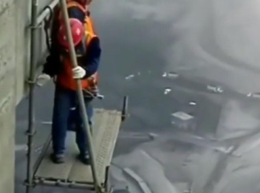 Video koji je objavljen na Instagramu pokazuje dvojicu radnika koji bez ikakve zaštite rade na jednoj skeli koja je nevjerovatno visoko postavljena.